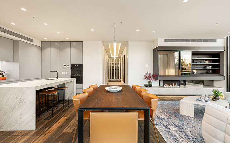 The materials palettes feature natural timbers, stunning stonework, high-end fitting and fixtures and custom joinery throughout.